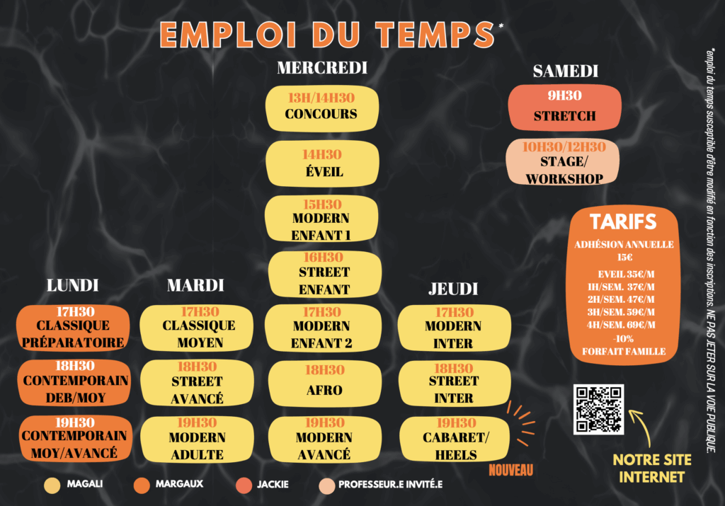 💡 Retrouvez tous les tarifs et le dossier d’inscription dans l’onglet Planning & Inscriptions.